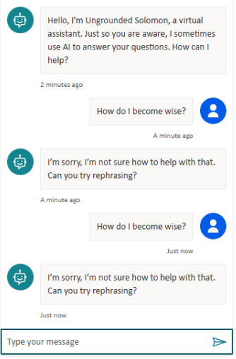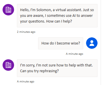 Remember that the purpose of the Solomon chatbot is to give advice grounded in Proverbs, not to answer questions specifically about the text of the book. You will notice that some of the questions do mention Proverbs or Solomon. They should be easier for a chatbot using keyword queries to answer.