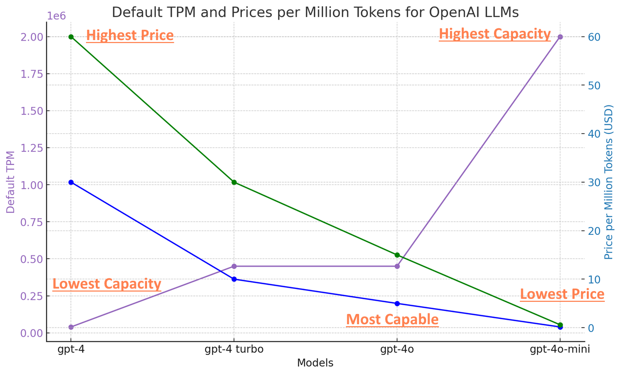 - GPT-4o-mini: 2 million TPM (Default), 50 million TPM (Enterprise agreement)