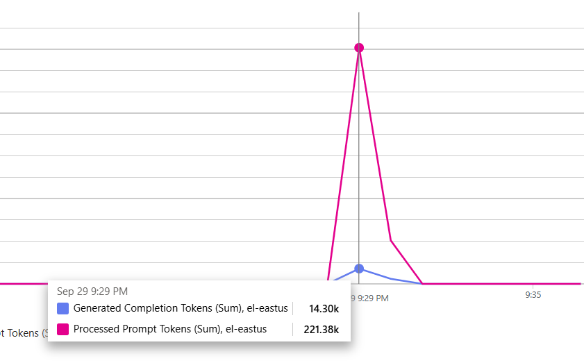 This chart shows one such run which took just over 60 seconds. During that time a total of 41 ants search the web, loaded pages and extracted relevant content, but it also shows a massive spike in usage which the quota for the deployments easily permit.
