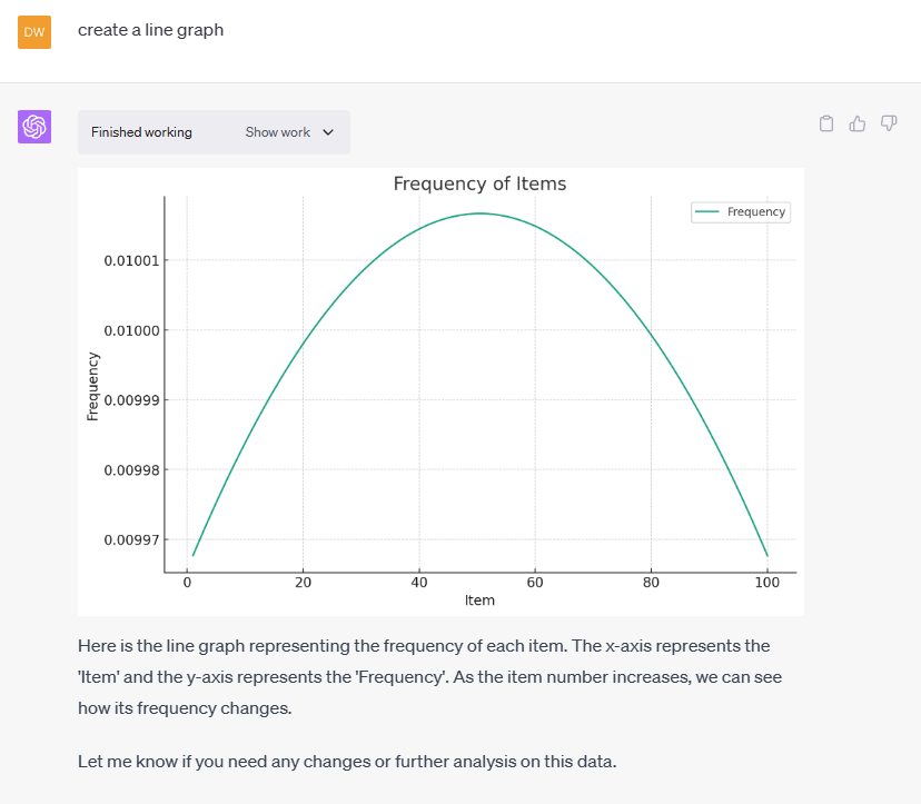 - Step 3: Ask it to do more with the file such as “create a line graph”