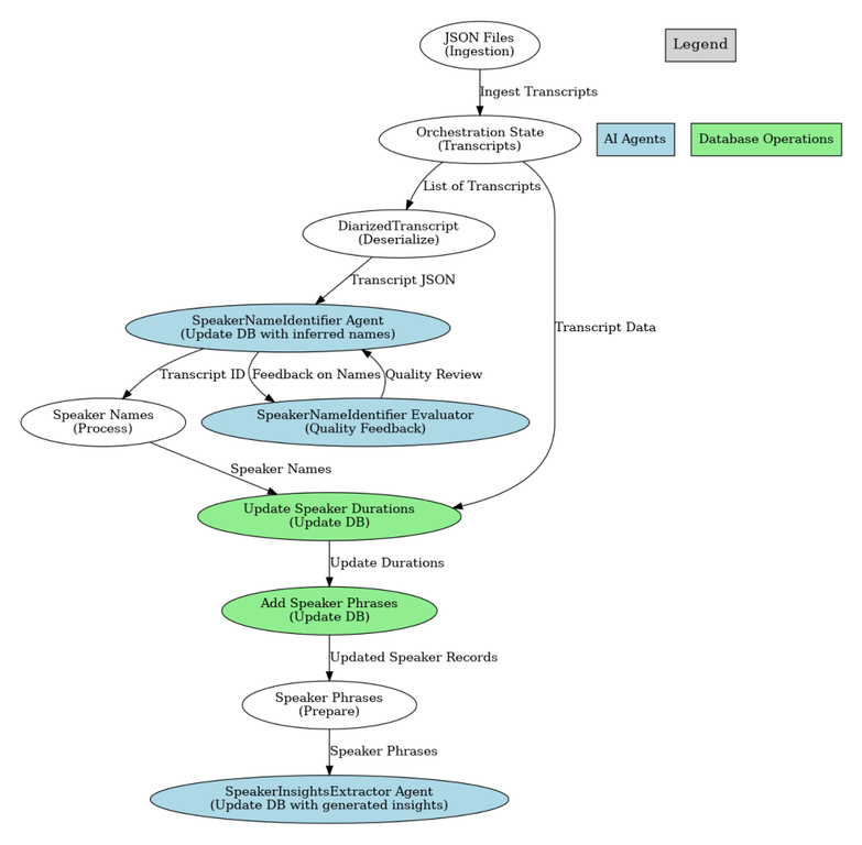 - SpeakerInsightsExtractor extracts meaning from passages in the transcript and a tool to insert the results into the database