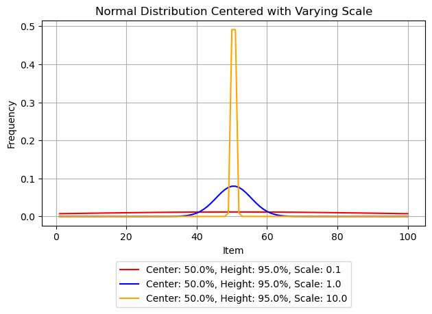 A third way to use the algorithm is to change the center of the curve. In this example, items at the beginning of the list are most likely to be selected.